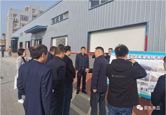 11月16日,安徽省財政廳廳長羅建國、廬江縣縣長許華為、廬江臺創(chuàng)園黨工委書記俞德勝、副主任尹夢一行到安徽昊東食品科技有限公司,就企業(yè)災后重建、復工復產(chǎn)工作進行調研。