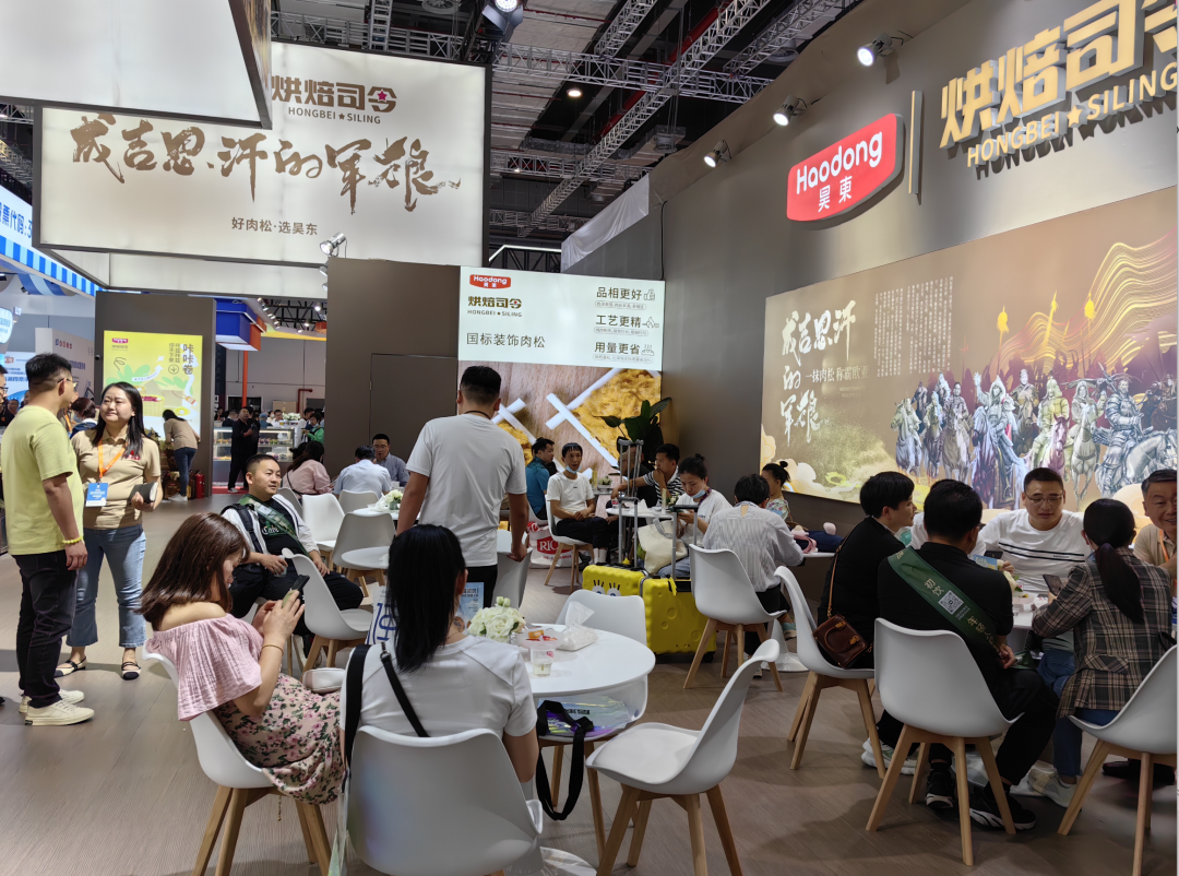 來來往往的人群,和我們銷售人員相談甚歡。展會期間,昊東食品展前圍起了許多看肉松品嘗肉松的食品同仁以及來洽談合作的客戶。一直以來,昊東食品立志成為中國有良心、有道德底線,令廣大消費(fèi)者安全放心、健康美味的食品企業(yè)。昊東食品已逐步成為烘焙同仁值得信賴的合作伙伴。