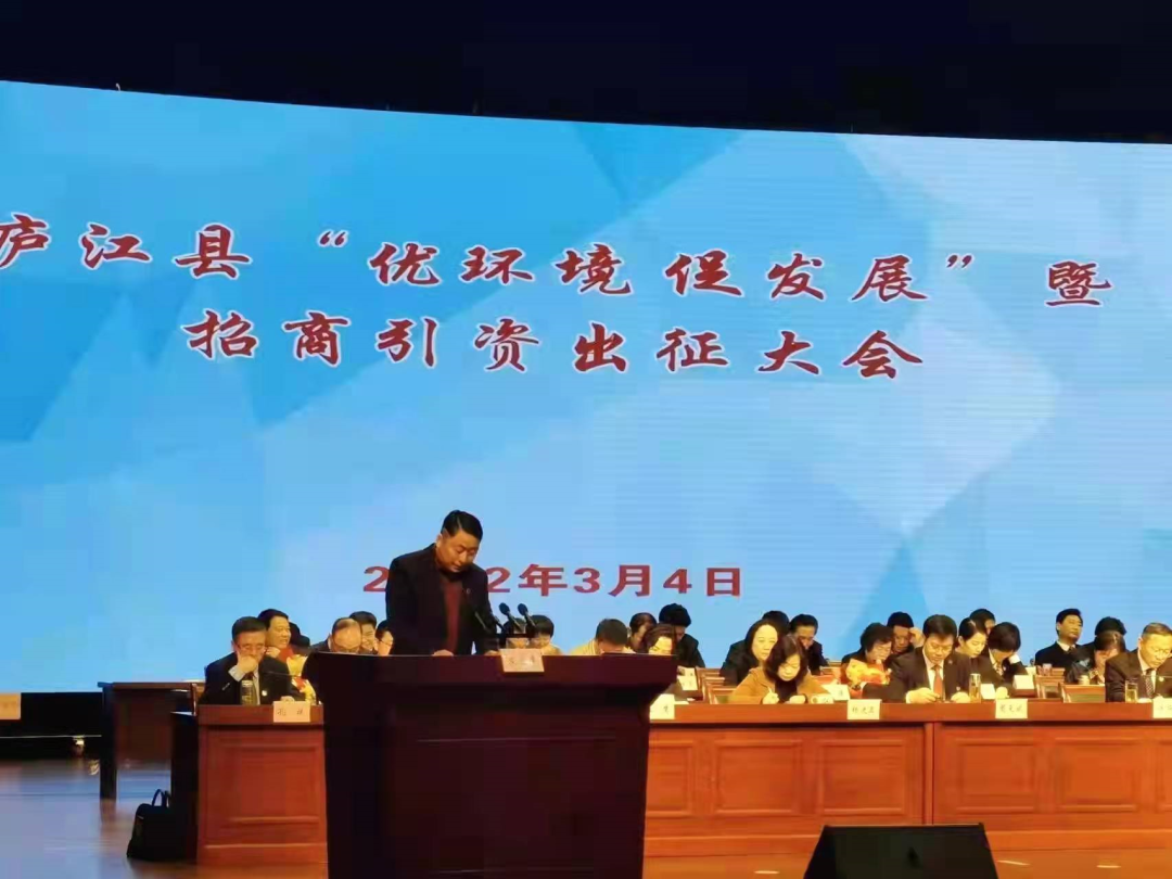 2022年3月4日,廬江縣“優(yōu)環(huán)境 促發(fā)展”暨招商投資出征大會在廬江大劇院1號廳舉辦,由縣委副書記、縣長周天斌主持召開。